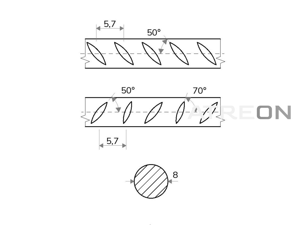 Betonstahl 8 mm ist Bewehrungsstahl der Güte B500B, der in Beton eingelegt wird, um dessen Tragfähigkeit zu erhöhen und die Verformung des Betons zu reduzieren. Es handelt sich um gerippten Betonstahl (auch Rippenstahl), der zur Herstellung von Stahlbeton verwendet wird. Gerade dank Bewehrungsstäben behalten Bauwerke Stabilität und Festigkeit und erreichen eine lange Lebensdauer. Die Bewehrung kann in Biegereien/Armierbetrieben gemäß der geforderten technischen Dokumentation geformt und gebogen werden. Der Durchmesser beträgt 8 mm; geliefert wird in der Produktionslänge von 6 m mit einem Gewicht von 2,40 kg. Das Gewicht pro Meter beträgt 0,40 kg.
