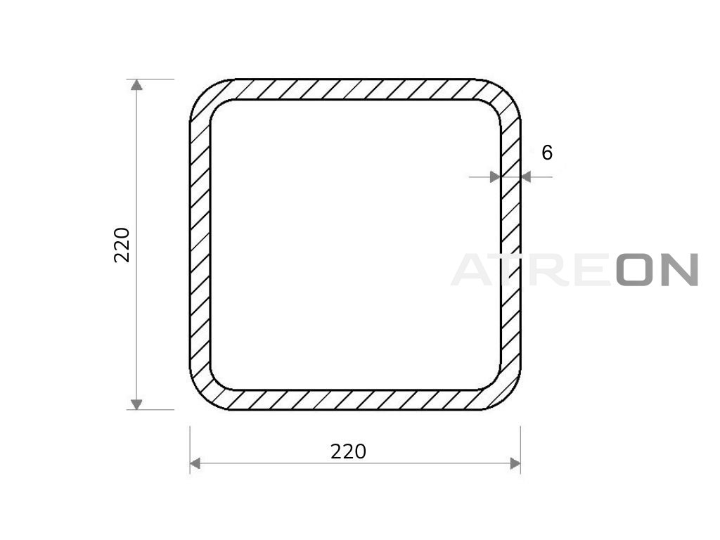 | Alternative Bezeichnung: | Quadratrohr 220x220x6 |