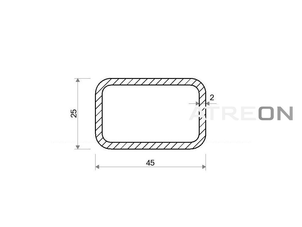 | Alternative Bezeichnung: | Rechteckprofil 45x25x2 |