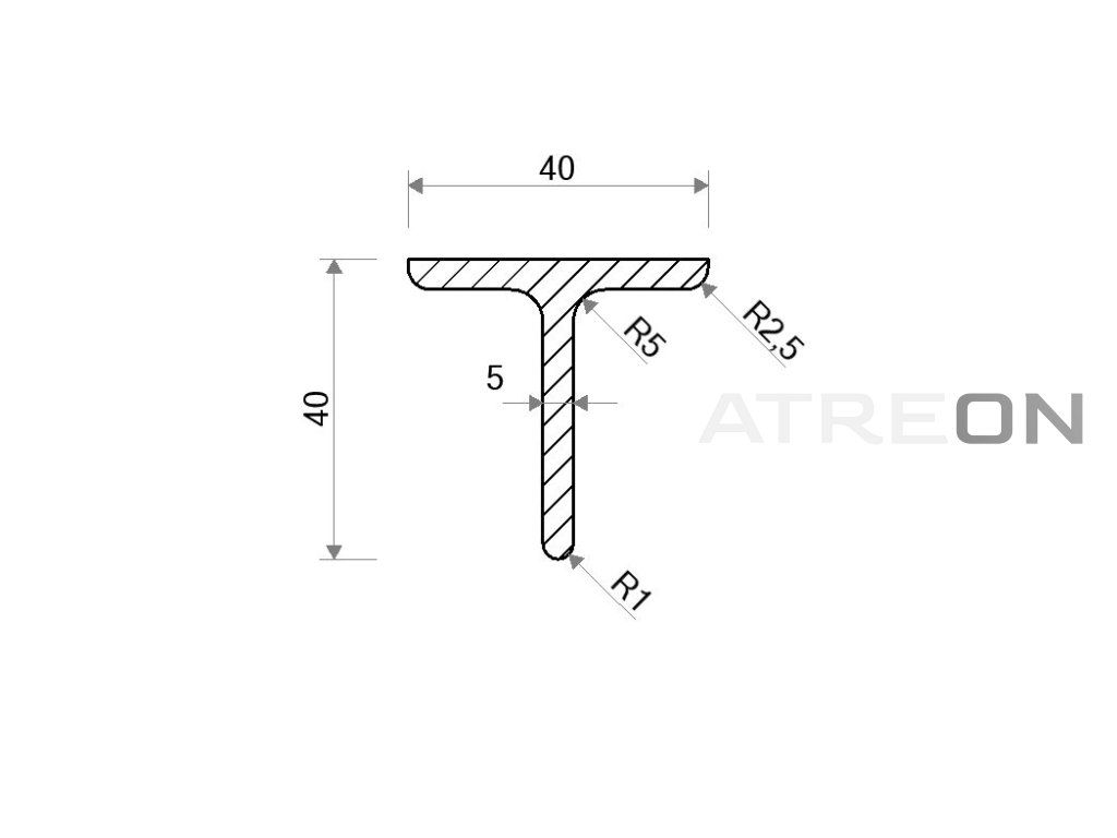 Der T-Profil 40×40×5 ist ein warmgewalztes Stahlprofil der Güte S235. Er ist garantiert schweißbar und ohne Oberflächenbeschichtung. Der verwendete Konstruktionsstahl eignet sich für Bereiche, die statisch und dynamisch belastet werden. Eingesetzt wird der Stahl-T-Träger vor allem im Bauwesen und in Metallbaubetrieben zur Herstellung von Rahmen oder als Verstärkung von Hilfskonstruktionen. Er ist nicht zum Härten geeignet. Geliefert wird der T-Träger in 6-m-Stablängen mit einem Gesamtgewicht von 17,76 kg, einer Steghöhe von 40 mm und einer Dicke von 5 mm. Das Gewicht pro Meter beträgt 2,96 kg.
