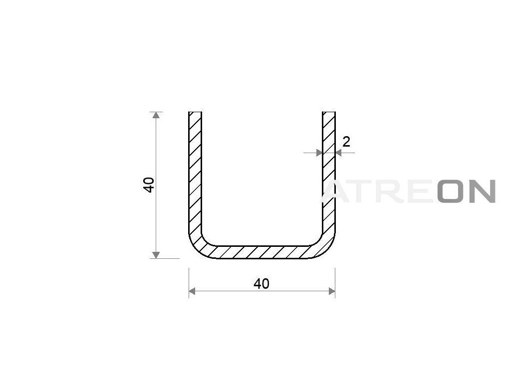 Das U Profil 40x40x40x2 ist ein offenes, dünnwandiges (dickwandiges) gleichschenkliges Stahl-U-Profil der Güte S235, kaltgewalzt mit garantierter Schweißbarkeit. Dieses rechteckige Profil ist gekantet und hat abgerundete Kanten. Es wird vor allem im Bauwesen und im Metallbau eingesetzt. Geliefert in der Produktionslänge von 6 m mit einem Gewicht von 10,74 kg, einer Höhe von 40 mm, einer Profilbreite (Basis) von 40 mm und einer Wandstärke von 2 mm. Das Gewicht pro Meter beträgt 1,79 kg.