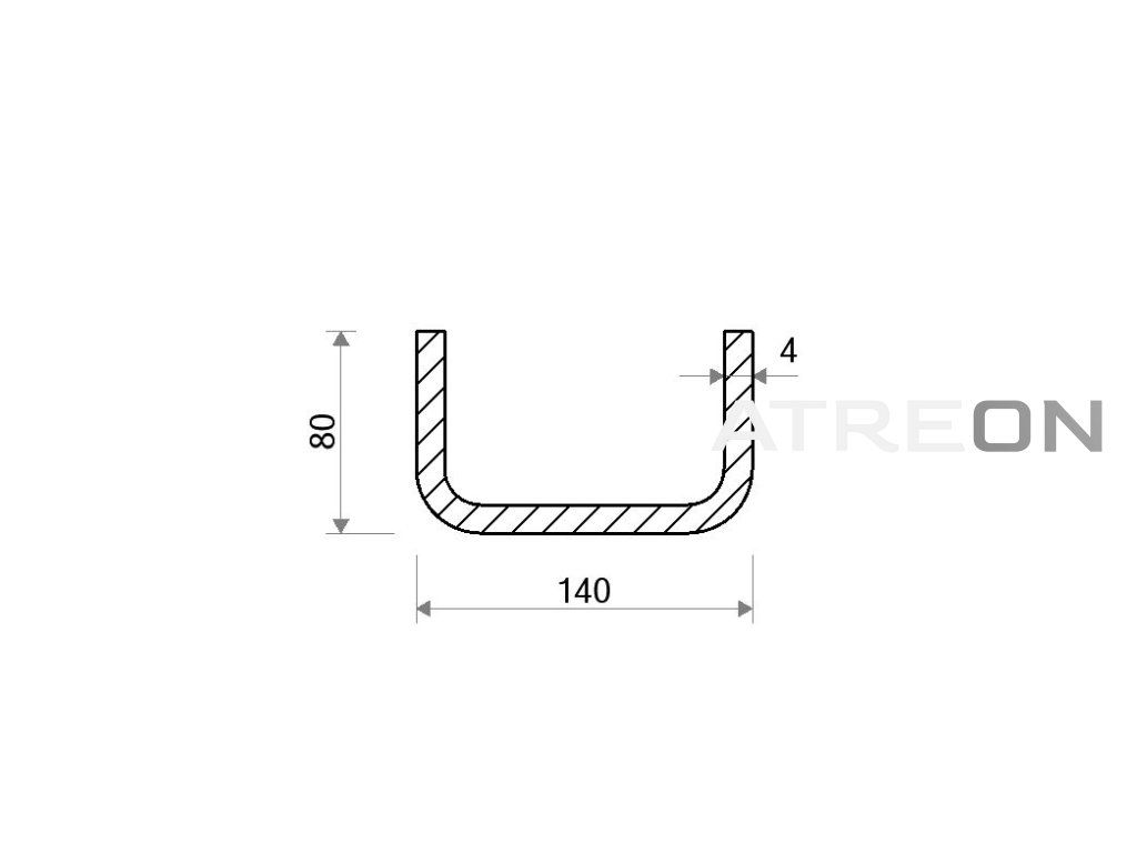 Das U profil 80x140x80x4 ist ein offenes, dünnwandiges (dickwandiges) ungleichschenkliges U-Profil Stahl der Güte S235, kaltgewalzt mit garantierter Schweißbarkeit. Dieses rechteckige Profil ist gekantet und hat abgerundete Kanten. Es wird vor allem im Bauwesen und im Metallbau eingesetzt. Geliefert in der Produktionslänge von 6 m mit einem Gewicht von 78,66 kg, einer Höhe von 80 mm, einer Profilbreite (Basis) von 140 mm und einer Wandstärke von 4 mm. Das Gewicht pro Meter beträgt 13,11 kg.