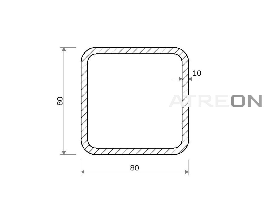 | Alternative Bezeichnung: | Quadratrohr 80x80x10 (S355) |