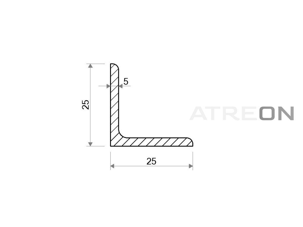 | Alternative Bezeichnung: | L-Profil 25x25x5, L-Profil stahl 25x25x5 |