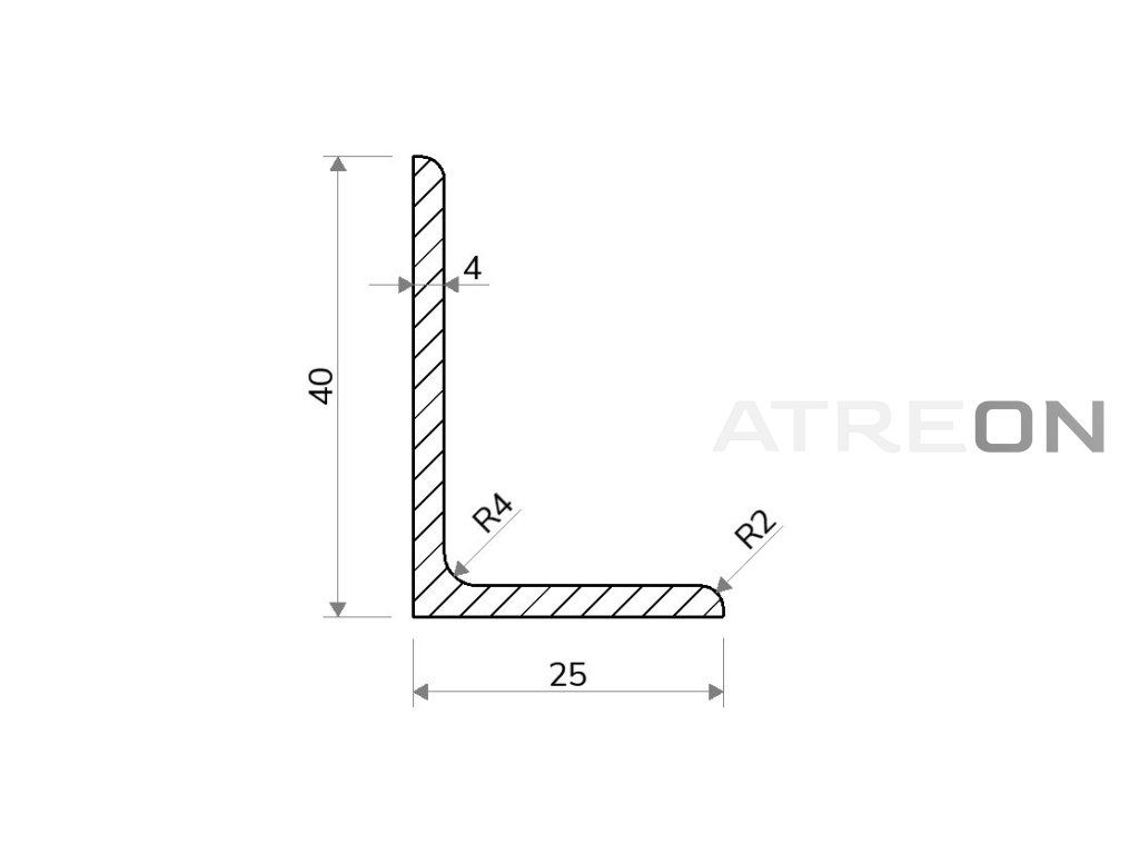 | Alternative Bezeichnung: | L-Profil 40x25x4, L-Profil stahl 40x25x4 |