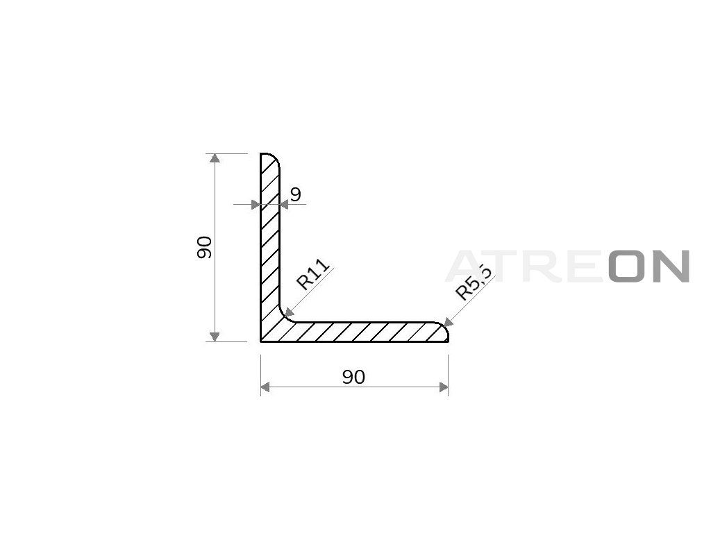 Winkelprofil 90x90x9 (S355) ist ein warmgewalztes, gleichschenkliges L-Profil (Winkelstahl) aus unlegiertem Baustahl der Güte S235, das vor allem im Bauwesen und im Metallbau eingesetzt wird – überall dort, wo Stahl sowohl statisch als auch dynamisch belastet wird, und wird in der Produktionslänge von 6 m mit einer Wandstärke von 9 (S355) mm, einem Gesamtgewicht von 72.49 kg sowie einem Gewicht pro Meter von 12,08 kg geliefert.